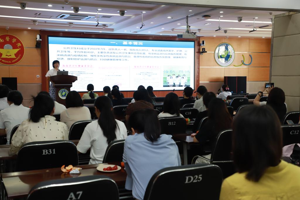 公共卫生科主任朱雪丽回顾了过去一年各科室在公共卫生管理方面取得的成绩,并对各科室一直以来对公共卫生管理工作的支持与配合表示感谢。她从传染病上报情况、公共卫生事件处置、健康宣教、慢性非传染性疾病监测与防治等方面详细总结了公共卫生科2023年工作情况,并通报了2024年重点工作。