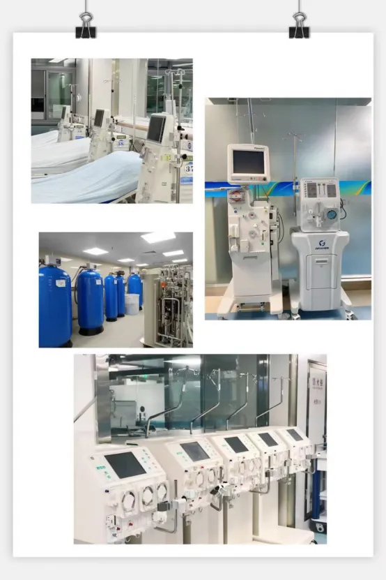 肾内科设备总览【透析门诊&肾内科新病区】透析门诊护士站现已全新升级,肾内科设备也迎来全面更新。新病区整合为肾病临床诊疗区、肾内病区、血液净化中心三大部门,门诊细分为肾病门诊、血管通路门诊、腹膜透析门诊等多个专业方向,为患者提供更加精准、个性化的服务。肾内科新病区床位由原先的37张增至48张;同时,血液净化中心也扩大至约2000平方米,透析床位从54张增加到66张,拥有世界先进的双极反渗机,拥有进口透析机51台(其中透析滤过机9台)、CRRT治疗机8台、多功能血液净化机1台,血液灌流机1台——世界先进的透析设备,舒适、宽敞、明亮的环境,优秀的医护团队确保患者在这里能够享受到最优质的透析治疗。【环境舒适,分区明确】透析区环境宽敞明亮、舒适安全,设有9个独立的透析区域,是省内率先实现分区分机透析、避免交叉感染的单位。我们严格按照国家卫生健康委要求设置了各类通道和区域,确保患者在安全、卫生的环境中接受治疗。