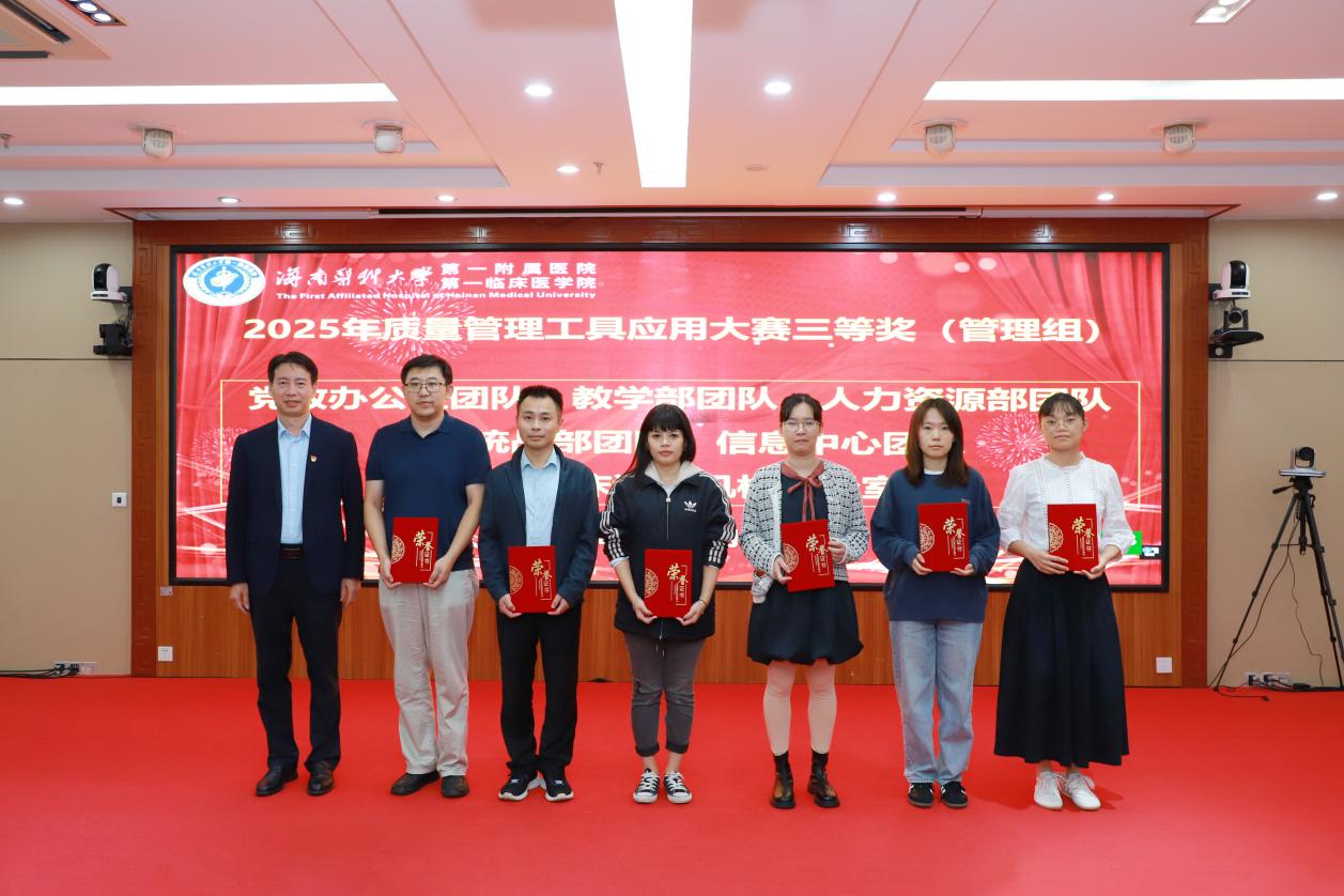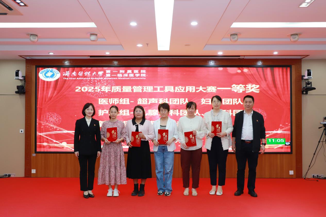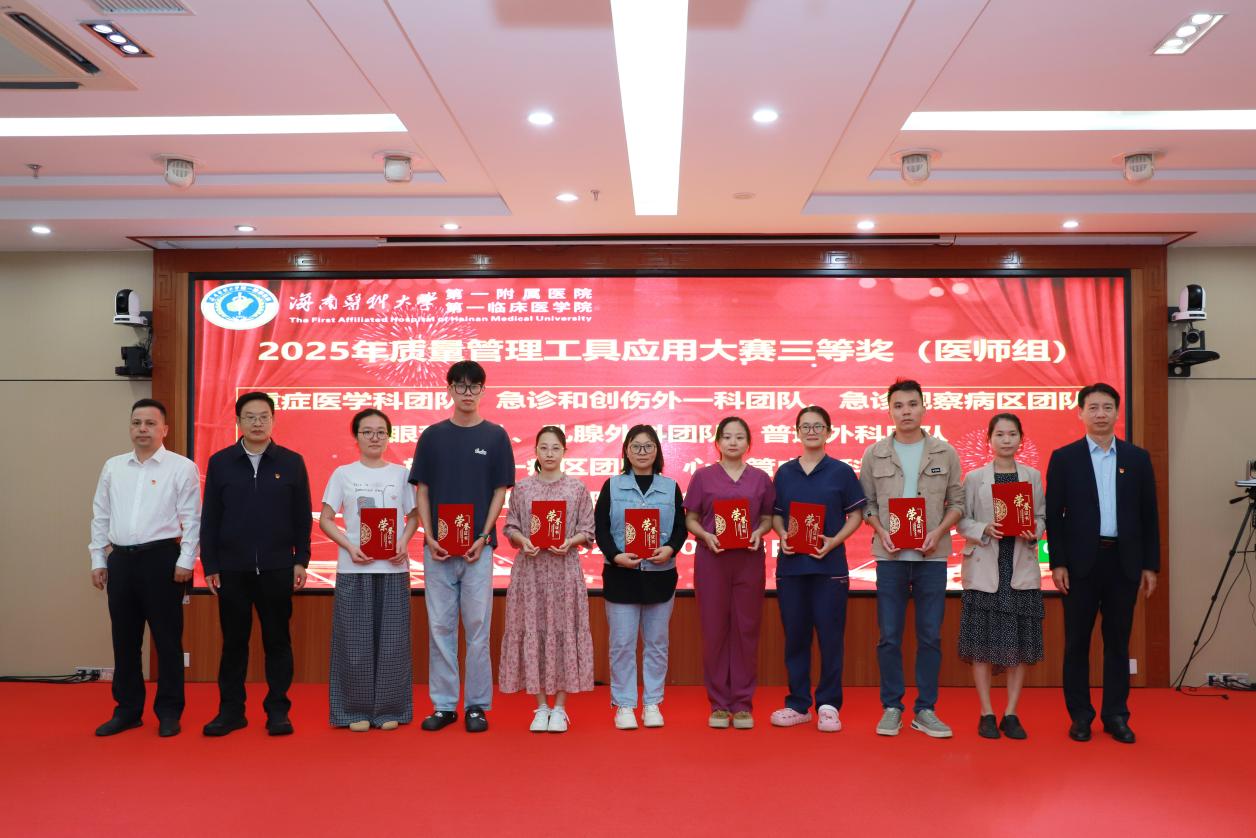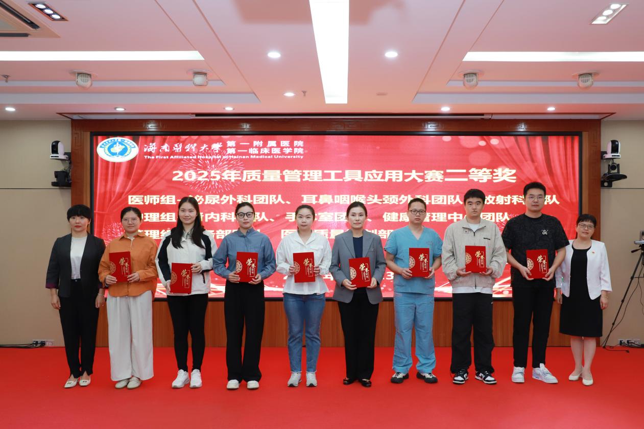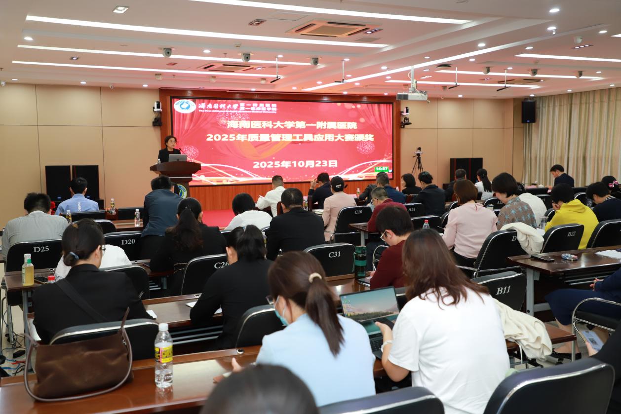 10月23日下午,海南医科大学第一附属医院2025年质量管理工具应用大赛颁奖仪式在综合住院楼5、6号会议室举行。院领导徐剑、李琪、肖红秀、孟凡莉、赵振强、黄雄高、黎海江出席仪式,并为获奖团队颁奖。