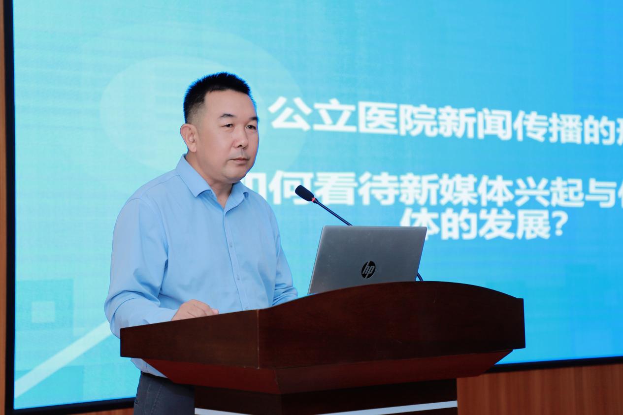 培训环节,刘泽林站长以《新形势卫生健康新闻写作和传播》为题,结合具体案例,从新闻写作要求、公立医院传播形势、新媒体宣传思路、新闻稿常见质量问题及科普新闻思维应用等方面,进行了详实且具实践性的授课,为通讯员明晰了卫生健康领域新闻宣传的核心要点。