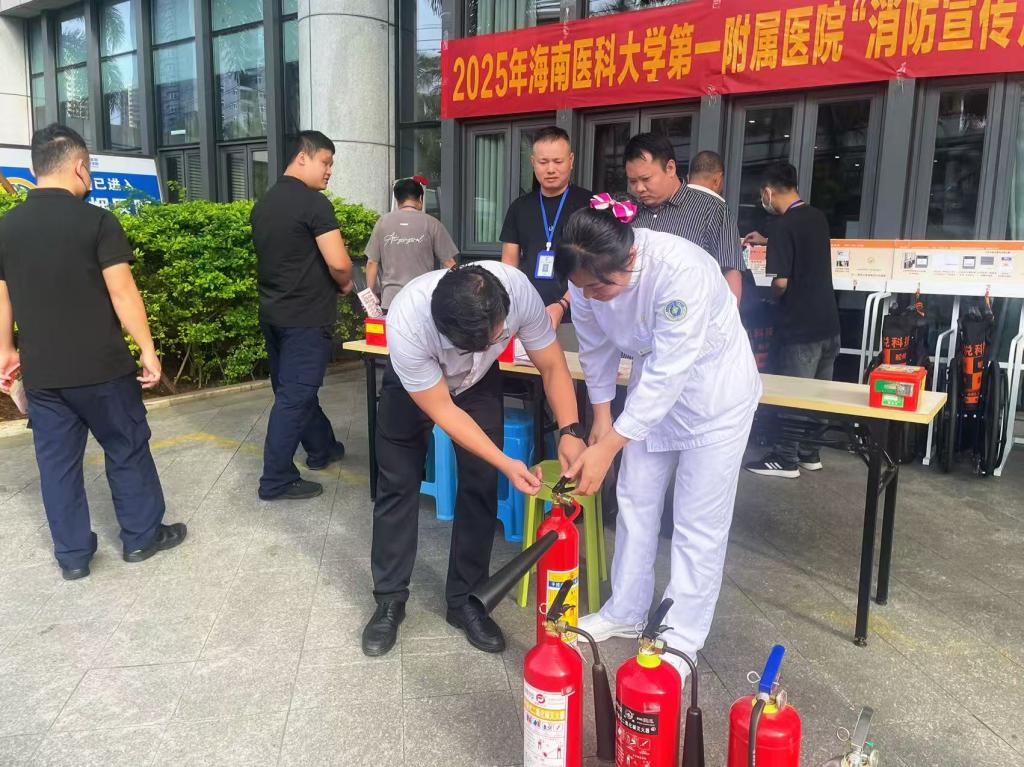 在实操演练环节,消防组人员现场演示灭火器四步操作法,手把手指导参与者进行实操体验,帮助大家真正掌握灭火技能。此外,过滤式消防自救呼吸器的正确佩戴方式、初起火灾模拟扑救等环节也引来阵阵掌声。一位参与实操的患者家属感慨道:“虽然家里有备灭火器但却从来没有真正使用过,现在体验过后,才有了一些“底气”。
