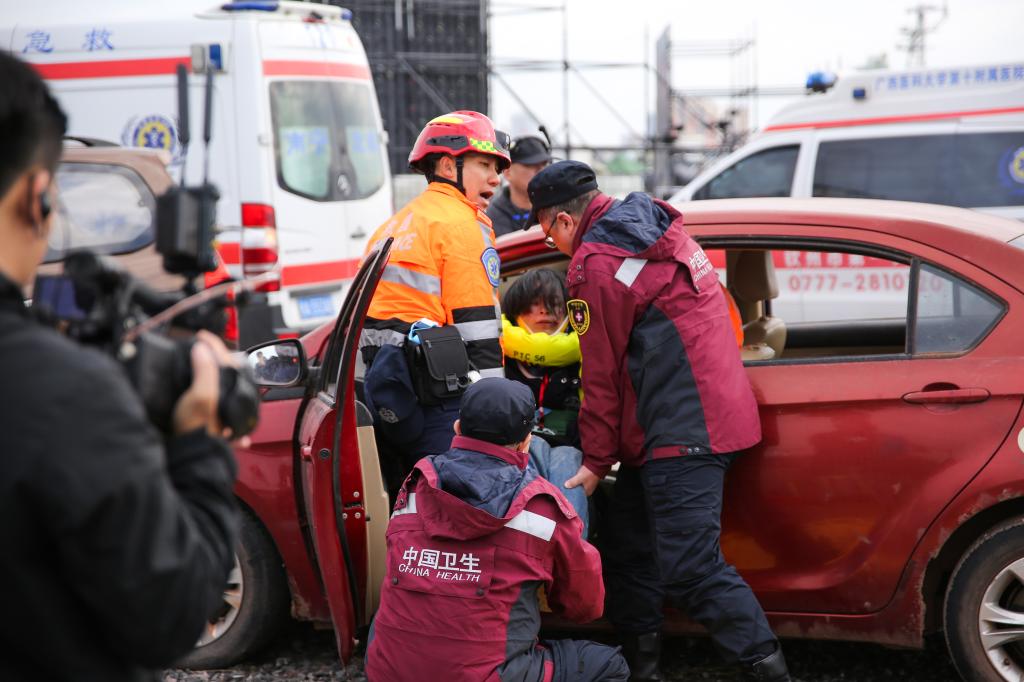 江西队与香港队联合处置连环车祸现场,救治包括颈椎损伤、腹部闭合性损伤在内的危重患者。