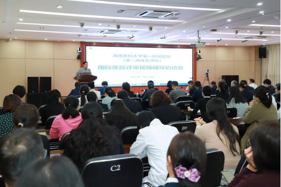 19日上午,海南医科大学第一附属医院召开国际医院评审认证辅导启动会,评审专家辅导组专家,全体院领导班子成员及各科室主任、护士长,管理机构及医疗服务部门副主任参加会议。