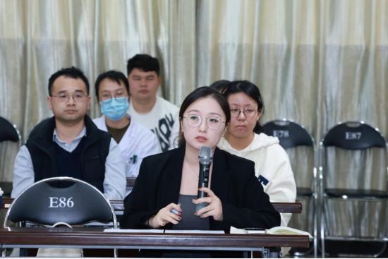 随后,学校教务处马婧副处长就学校科创项目的整体设计与推进情况作了详细说明。她指出,科创项目是学校深化医学教育改革、推动创新人才培养的重要举措,旨在引导学生“早进团队、早进项目、早进实验室”,着力培育创新思维与科研基本素养。她表示,此次深入临床一线的调研,将为项目持续优化提供重要依据。