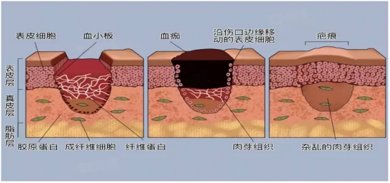 任何事物的发展都需要时间和过程,伤口愈合亦是如此。从止血的紧急响应到炎症的清理,再到新生组织的生长和疤痕的重塑,每个环节环环相扣,遵循着自身规律。它主要经历了止血期、炎症期、增殖期和重塑期四个阶段。
