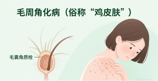 “鸡皮肤”的学名是毛周角化病,也叫毛发角化病或毛发苔藓,是一种常见的慢性毛囊性皮肤病。