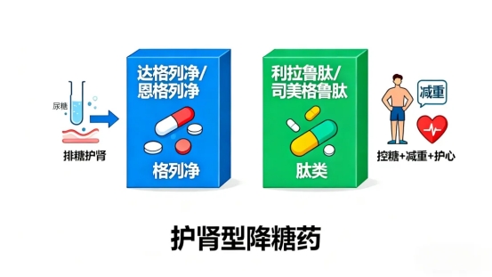 对糖肾患者来说,好的降糖药不只是“降糖工具”,还得是“肾脏保镖”。目前有两类药,临床证实能在控糖的同时,放慢肾损伤的速度: