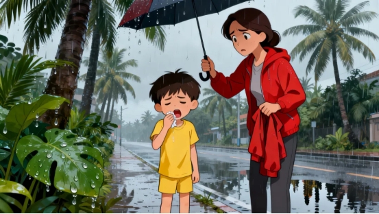 最近海南的天气就像调皮的孩子,一会儿阳光灿烂;一会儿又阴雨绵绵,气温骤降。不少家长发现,在这种多变的天气里,很多孩子成了“易感体”,流鼻涕、打喷嚏,可怜兮兮的模样,可把家长们愁坏了。