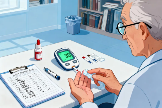 老年患者无需每天频繁测血糖,抓住关键时间点,家人协助记录。