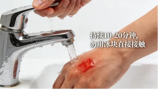 1、冷却烧伤部位:在烧伤发生后,应立即用冷水冲洗受伤部位,持续10-20分钟。冷水可以帮助减轻疼痛和炎症,防止进一步的组织损伤。注意不要使用冰块直接接触皮肤,这可能导致更严重的冷伤。