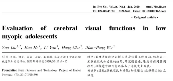 文献研究对120名青少年(按屈光状态分为低度近视组、屈光参差组及正常对照组)的知觉眼位、注视稳定性和立体视进行评估,以探究脑视觉认知功能。结果显示:低度近视在矫正至最佳矫正视力后,仍存在一定脑视觉认知功能缺陷。这表明,除局部视网膜调控外,脑视觉中枢可能也参与了近视发展过程。