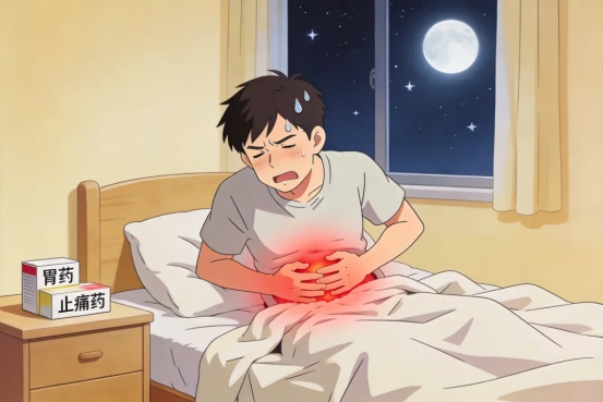 通常在暴饮暴食、饮酒后1-2小时发作,疼痛位置多在肚脐上方或偏左,呈持续性的剧烈胀痛、绞痛,像“刀割一样”,弯腰时可能稍微缓解,但直立、平躺时会加重,吃止痛药、胃药完全无效。