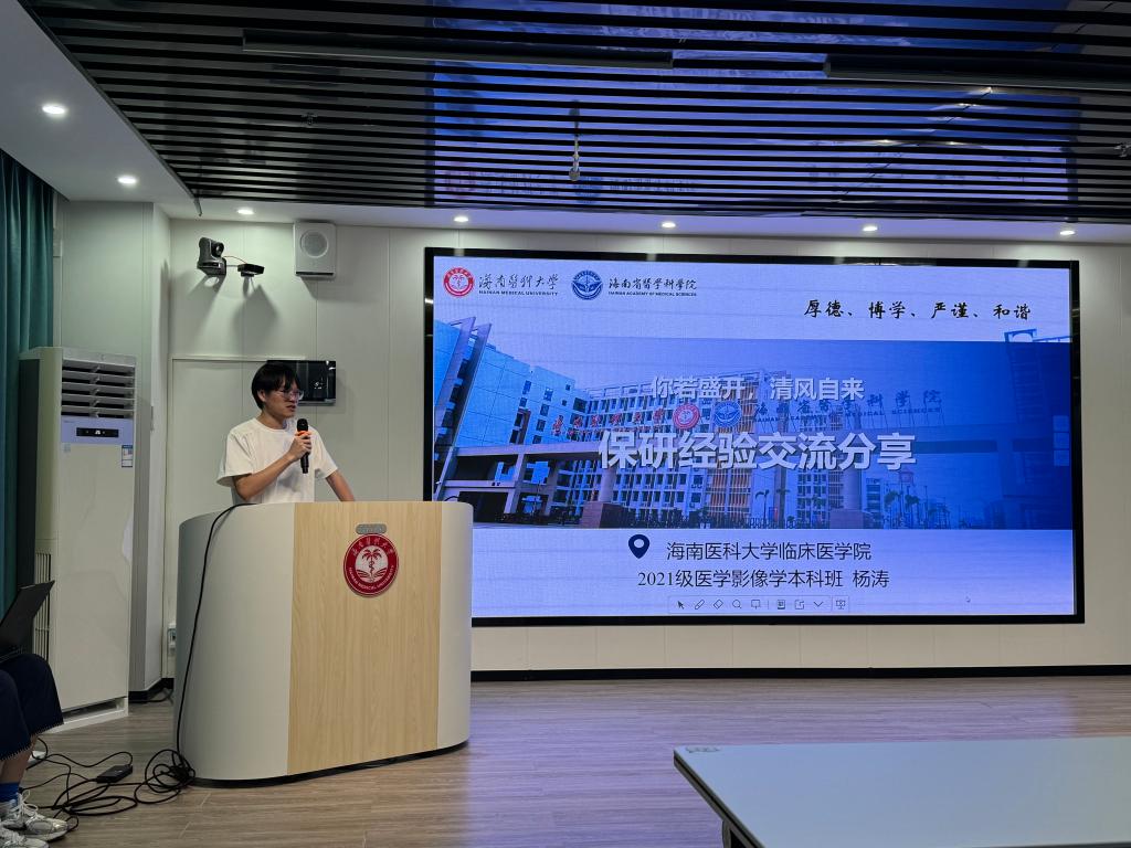 分享会上,3位优秀学子结合自身推免经历,从 “前期准备、院校选择、材料打磨、考核应对” 四大核心板块展开详细分享。其中推免至中南大学湘雅医学院的刘勇杰(2021级临床专业本科1班)强调了“绩点为基,实践赋能”的重要性,他结合自己平衡兼顾专业学习及竞赛实践的经历,详细讲述了何为怀“无用”之心探索,借“积累”之实破局。推免至南昌大学医学院的杨涛(2021级医学影像学本科班)则聚焦“择校策略”,建议学弟学妹根据自身实力精准定位 “冲刺档、稳妥档、保底档” 院校,详细讲解了预推免与夏令营的时间节点差异及应对技巧,强调打破信息差带来的局限。推免至复旦大学上海医学院的周俊宇(2021级精神医学本科班)分享了个人加分材料、推荐信、成绩单等核心材料的打磨技巧,强调 “个人加分材料要突出特色亮点,避免千篇一律”,并现场展示了自己修改前后的材料案例,直观呈现优化思路,同时还通过研究生面试的经历的剖析,拆解了导师专业问答、英文交流、科研或实践经历阐述等常见考核形式与应对方法。