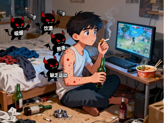 6、不良生活习惯:吸烟、饮酒、熬夜、缺乏运动等不良习惯,也可能是“帮凶”。