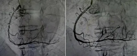数次旋磨后,坚硬的钙化环被成功“瓦解”,血管通道顺利打开。在血管内超声(IVUS)的精准指导下,医生顺利植入药物支架。术后造影显示,支架膨胀充分、贴壁良好,血流恢复通畅,患者症状即刻缓解。