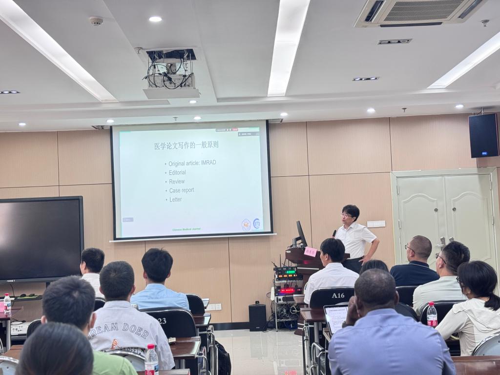 授课环节,郝秀原主任以“英文医学论文写作与投审稿”为主题,结合自身丰富的期刊编辑经验与学术积累,从论文选题、结构规范、投稿选刊等方面系统阐释了高质量期刊发表的要点与常见问题,内容详实、针对性强,为与会医护人员提供了极具实操价值的指导。