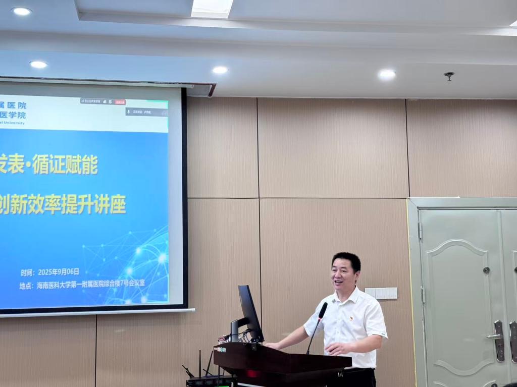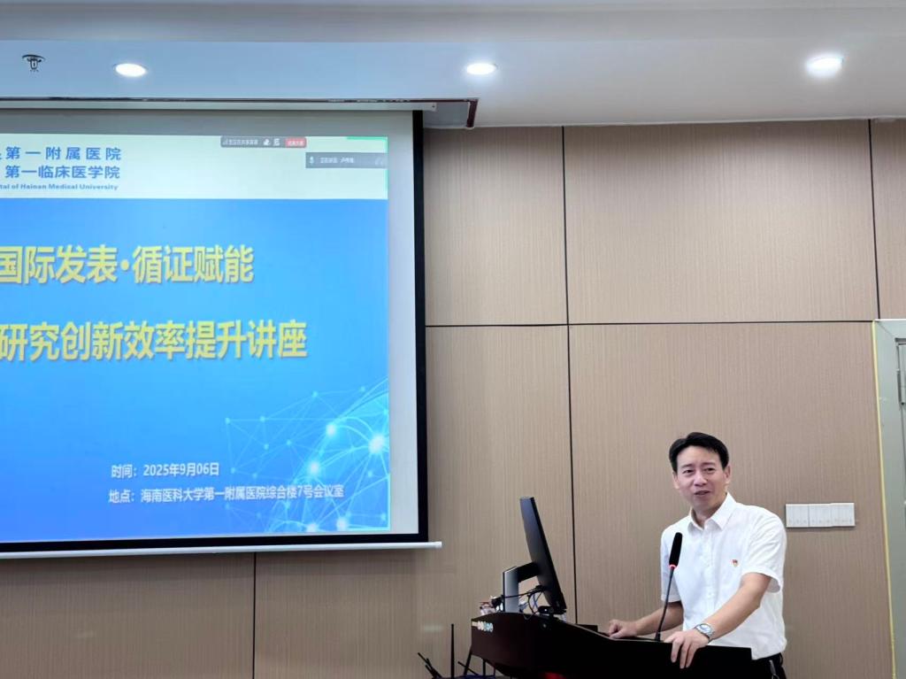 2025年9月6日上午,由海南医科大学第一附属医院科研部组织的“国际发表·循证赋能——医学研究创新效率提升培训”(第二期)在综合楼三楼7号会议室举行。中华医学杂志英文版(中科院二区,影响因子 7.3)副总编辑、编辑部主任郝秀原,威科集团高级培训师吴静受邀授课。