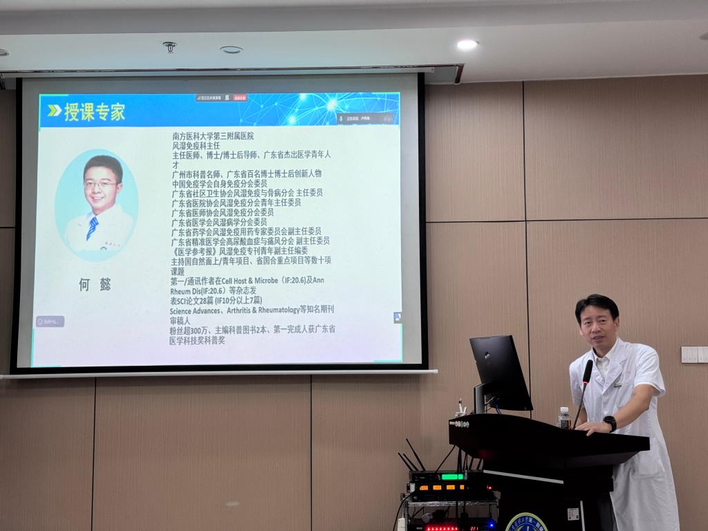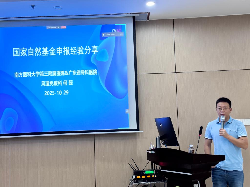 本次培训特邀南方医科大学第三附属医院风湿免疫科主任何懿教授担任主讲嘉宾。何懿教授是主任医师、博士/博士后导师,广东省杰出医学青年人才,具有深厚的科研积累与丰富的国自然评审经验。他围绕 “科学问题的国自然基金医学部项目选题思考与顶层设计 —— 临床医生专属创新路径和经验心得” 展开专题讲解,系统介绍了国家自然科学基金项目概况、面上(青年)项目评审程序及要点,深度解读 2026 年国自然最新变化,并从申请书撰写要求、项目选题思考与设计等维度,为学员梳理了国自然申报的核心逻辑与创新路径。