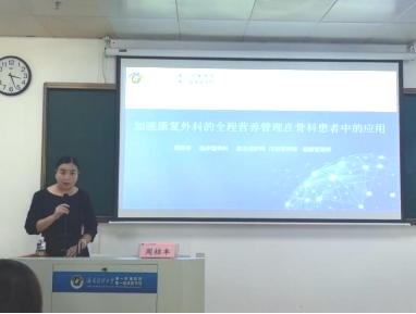 营养科周桔丰副主任护师带来《加速康复外科的全程营养管理在骨科患者中的应用》,强调了全程营养管理在骨科患者康复中的关键作用。