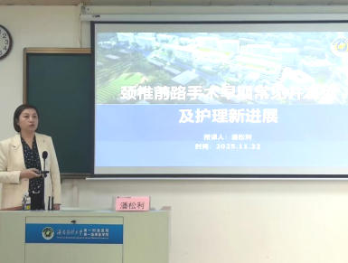 脊柱外科护士长潘松利再次登台,讲解了《颈椎前路手术早期常见并发症及护理新进展》,强调预见性护理理念。