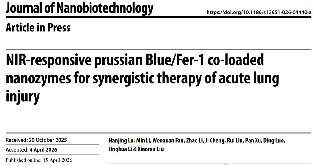 喜报!海医一附院研究生成果登中科院一区权威期刊 为急性肺损伤精准治疗提供新方案