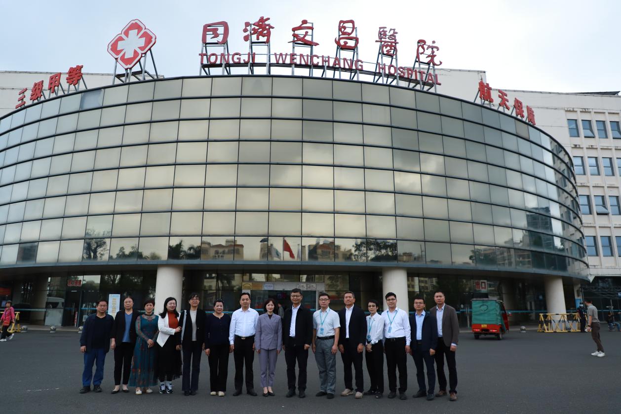 当天下午,在文昌市人民医院,文昌市副市长梁剑肖会见李琪院长一行。随后,调研组与文昌市卫健委党委书记、主任王成发,文昌市人民医院院长刘顺芳、副院长邢林艳、张腊喜、林师佈等院领导班子成员及相关科室负责人座谈。双方围绕学科建设、服务质量提升、资源下沉、区域医疗发展及航天医疗保障等议题深入交流。
