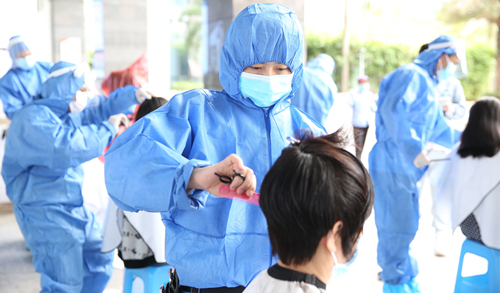 “你们在一线工作辛苦了,我们来给你们义务理发。”