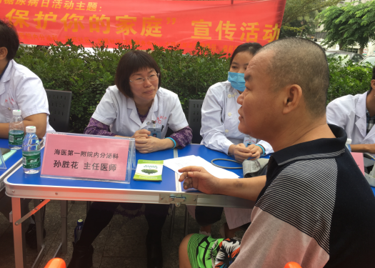 2019年11月14日是第9个“联合国糖尿病日”,今年的宣传主题是:防控糖尿病,保护你的家庭。当天,在龙华区供电小区举行义诊,我院疾病预防控制科、内分泌科主任王新军、孙胜花主任医师、陈竑主任医师等7名医护人员参加义诊。义诊现场,医务人员耐心的对患者进行了问诊,并对他们提出的问题进行了深入细致的解答。医护人员针对为什么控制糖尿病刻不容缓、糖尿病的危害、糖调节受损、如何预防糖尿病,尤其是饮食与糖尿病的关系等方面对群众作了健康教育。活动现场还免费提供了测血糖、血压、体重等服务。当天,共义诊60余名市民,发放宣传资料一百余份,获得了广大人民群众的一致好。