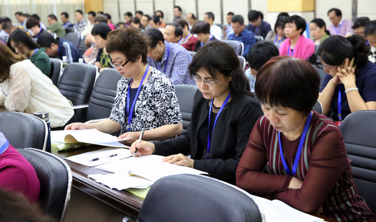 代表们认真听取报告