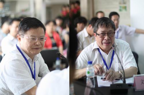 专家胡学强(左)、刘唐威(右)听取汇报并发言
