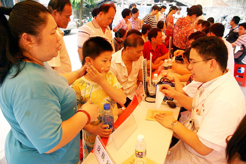 5月28日上午,海医附院团委与特区报联合组织“送服务进社区”活动,到社区为居民免费诊治。来自海医附院心血管内科、皮肤科、内分泌科、儿科、核医学科等科室的10余名经验丰富的医生,携带着血压计、便携式骨密度仪等医疗设备,早早地便来到了活动现场。据了解,因为确定参加活动时,该院当周的排班表早已确定,被抽调过来参加活动的好几名医生,都是上完夜班后赶过来的。