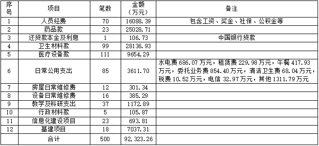 (三)重大(10万元以上)资金支出公示表: