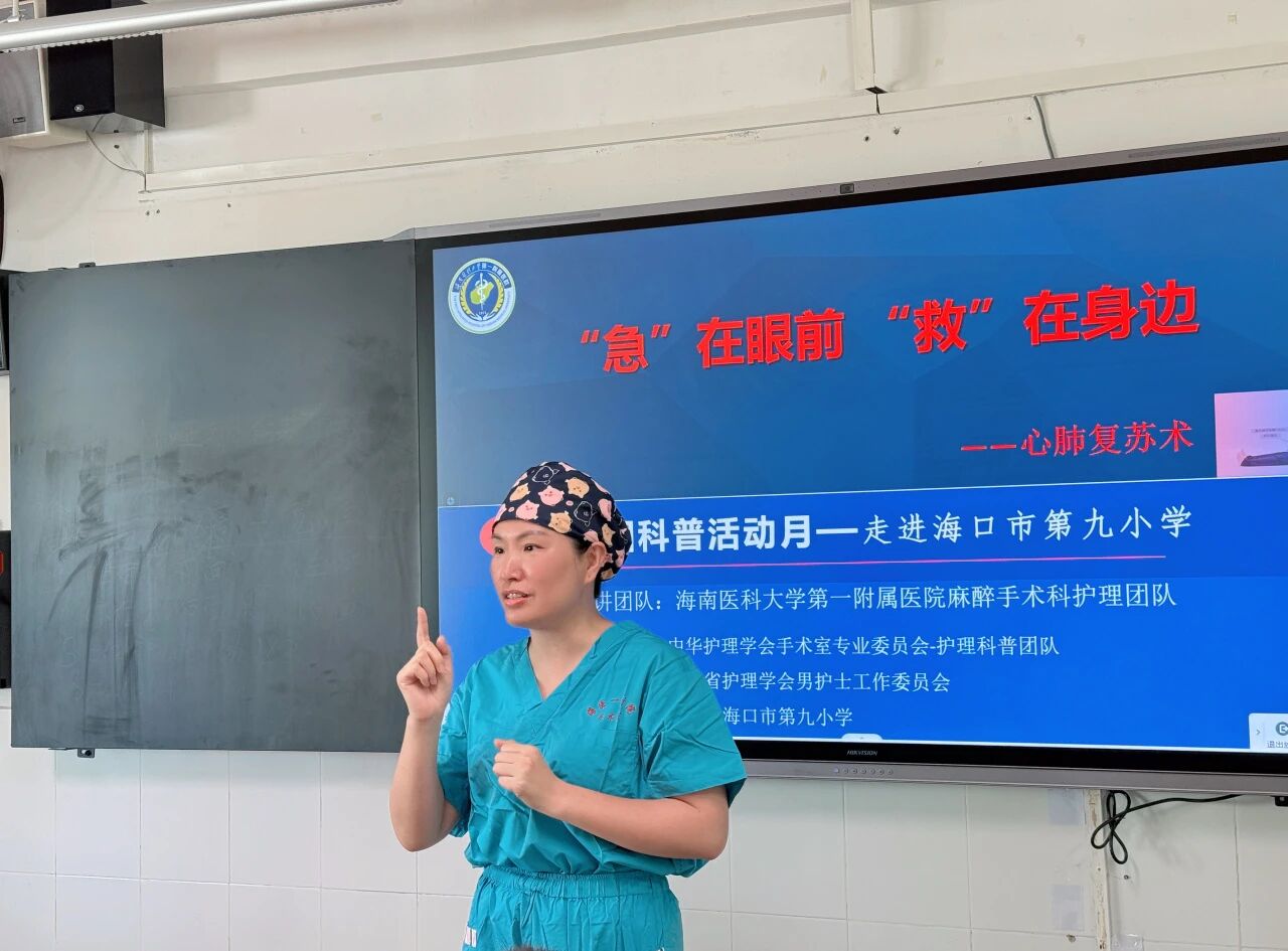 我院手术室护理科普团队走进海口市第九小学举行急救技能培训