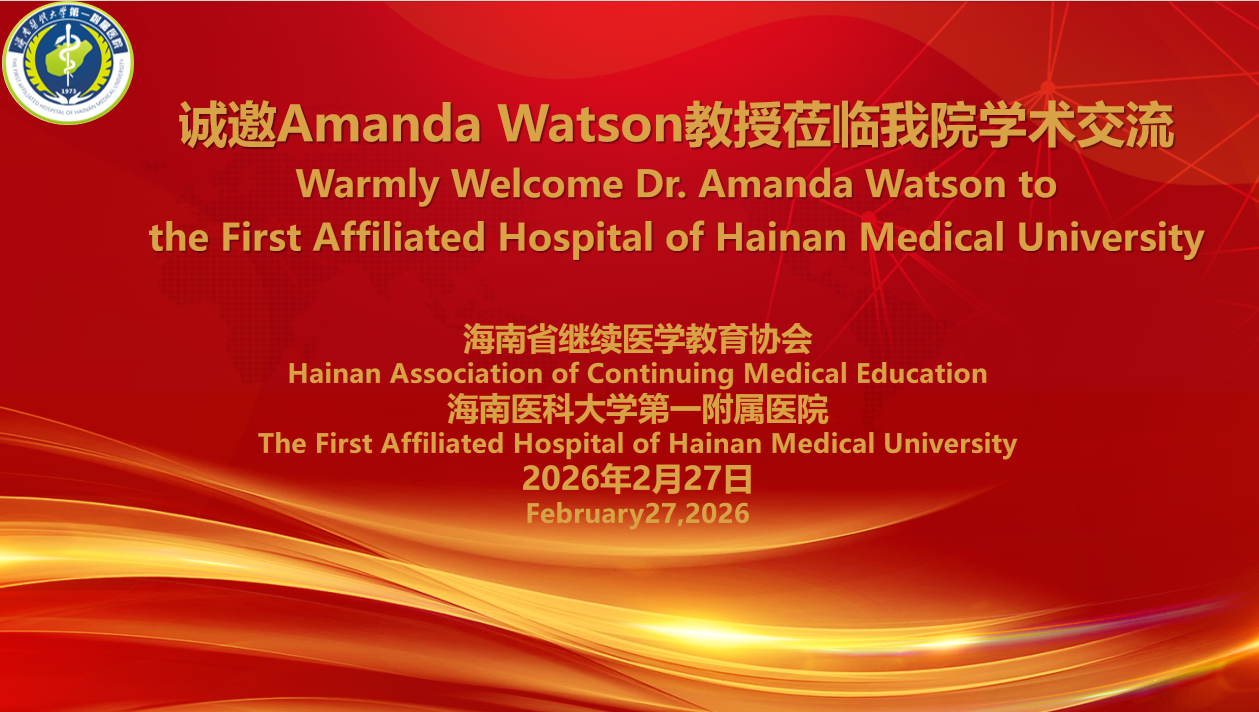 为拓宽我院护理团队国际视野、借鉴先进临床风险管理经验、提升护理服务质量。2月27日下午,由海南省继续医学教育协会主办、我院护理部承办的学术交流活动顺利开展。活动邀请澳大利亚Uniting AgeWell老年护理服务机构的Amanda Watson教授及薛存屹老师分享临床风险管理前沿理论与实践,吸引院内外150余名护理骨干参与。