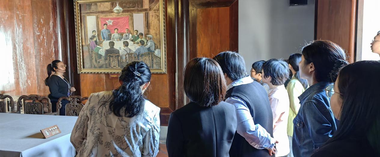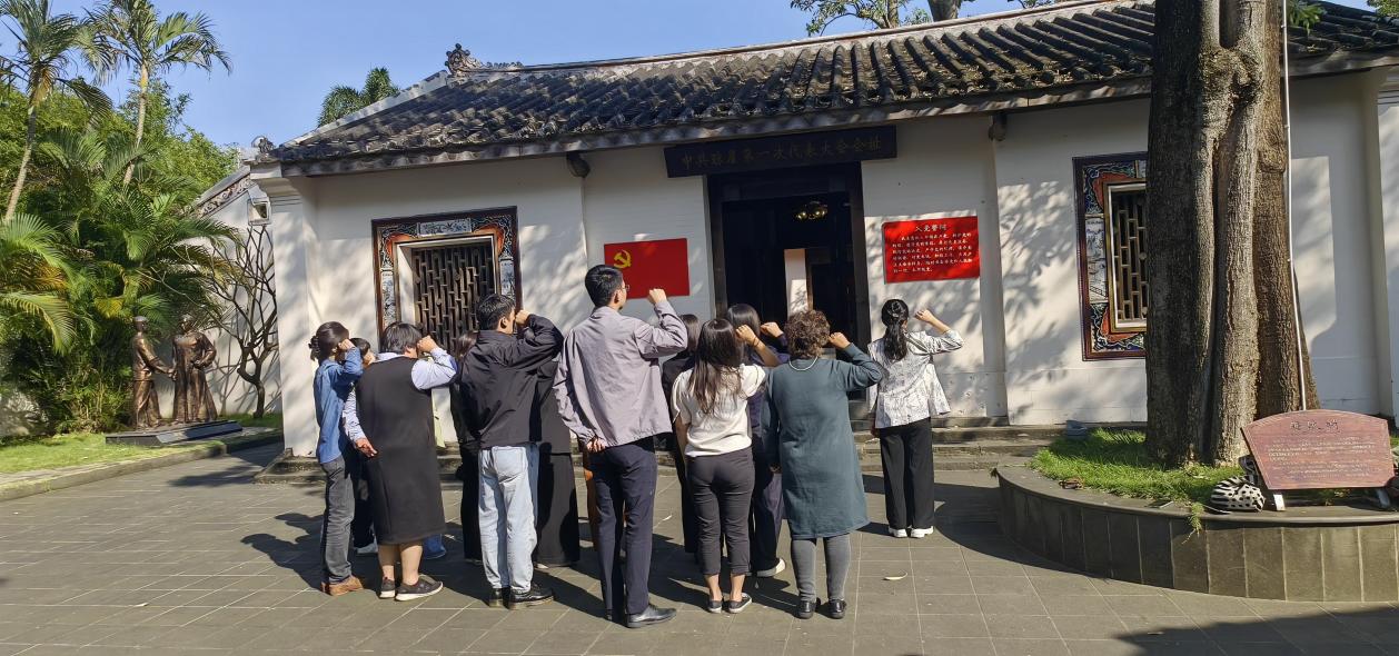 参观结束后,全体党员移步旧址广场的党旗宣誓区。在党支部书记王雪娇的领誓下,党员们面向党旗庄严宣誓:“我志愿加入中国共产党……为共产主义奋斗终生,随时准备为党和人民牺牲一切,永不叛党!”铿锵有力的誓言在旧址上空回荡,与百年前革命先驱“为民族谋解放、为人民谋幸福”的初心形成跨越时空的共鸣。