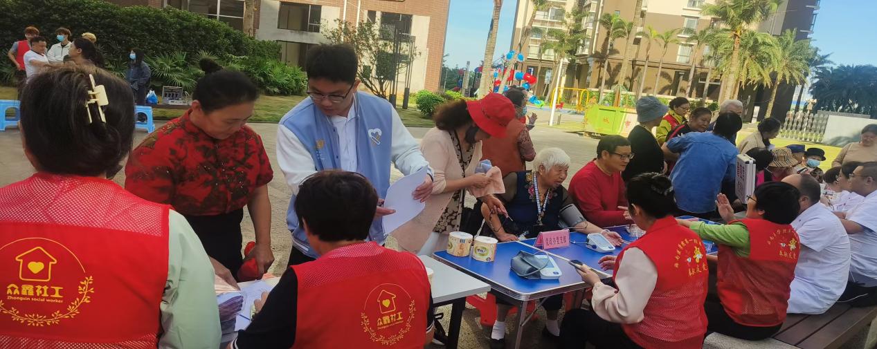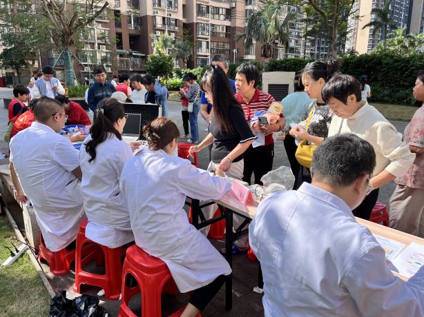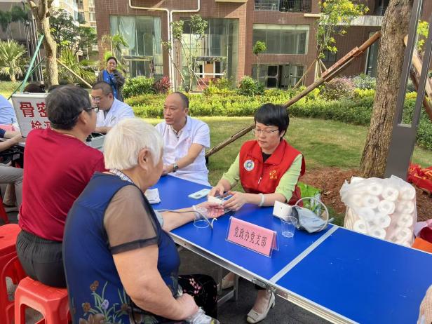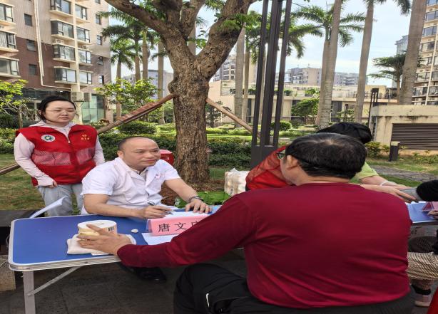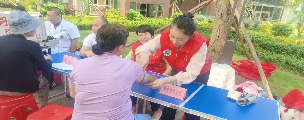 本次活动以党建为纽带,整合医院与社区资源,形成“社医联合体”服务模式。海医一附院党政办党支部充分发挥党员先锋模范作用,组织核医学科、老年科、护理团队等骨干力量,深入社区为老年人提供健康咨询、慢性病管理指导及免费血压、血糖检测等服务。活动现场,医护团队针对高血压、糖尿病等老年常见病,用通俗语言讲解预防知识,并演示居家健康监测方法,获得居民一致好评。