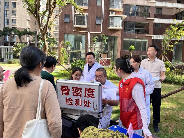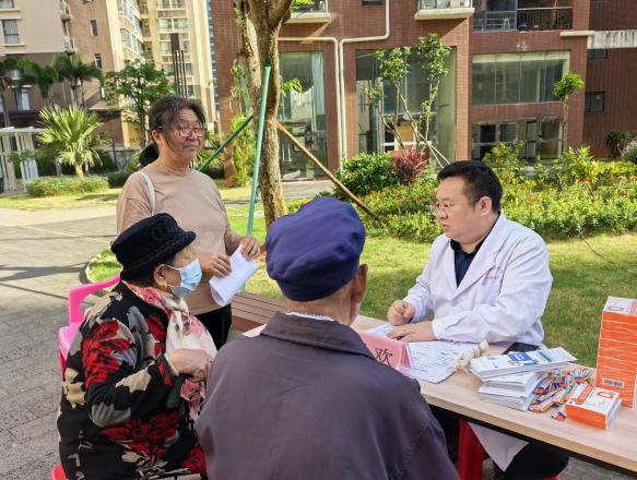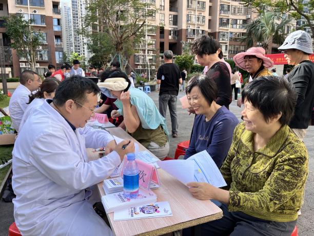 2025年11月12日上午,医院党政办党支部联合社区医疗机构在丽晶维港小区开展“医心向党、医路为民”公益行之“银龄安康·医社守护”社医联合体义诊活动,为老年群体提供优质医疗服务,切实将健康关怀送到群众身边。