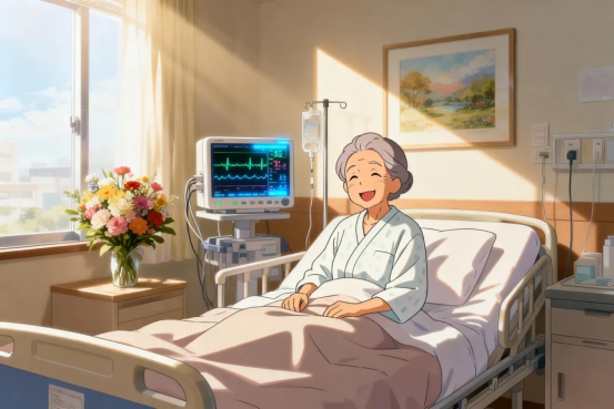 没有切口,没有疤痕,整个植入过程微创且高效。术后检测,起搏器参数运行正常,老人生命体征平稳。