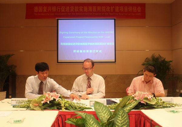 海医附院利用德国贷款促进改扩建项目评估备忘录签订 发布时间:2012-10-9 被阅览数: 182 次 海医附院宣传科 秦大伟/文 图 9月26日下午,德国复兴银行促进贷款实施海南医学院附属医院 海医...