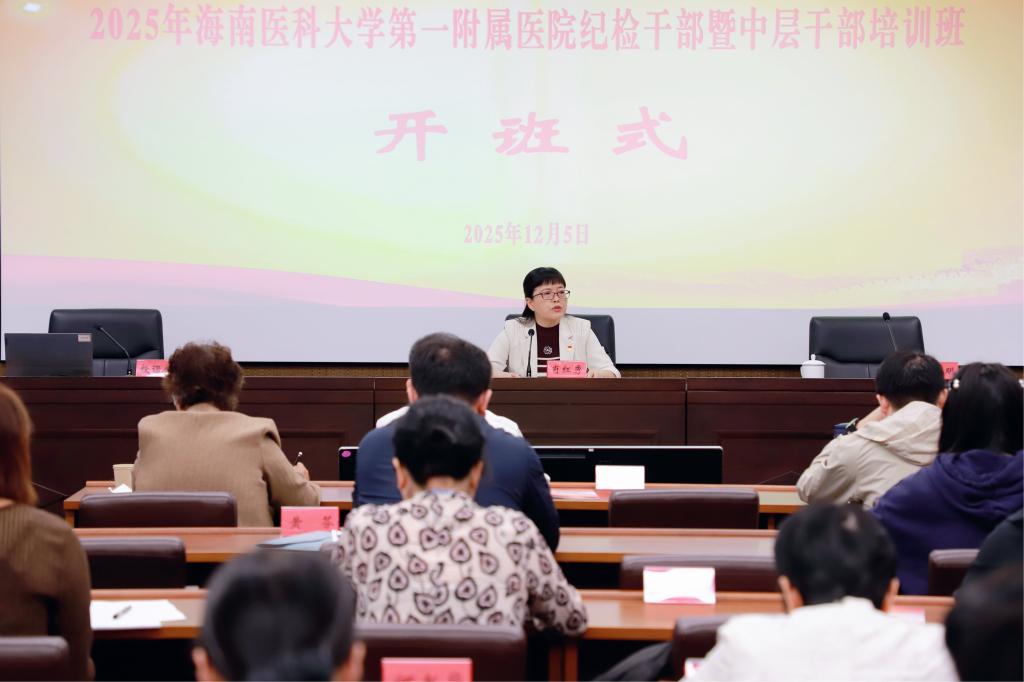 为持续加强干部队伍建设,提升履职能力和廉洁意识,12月5日至6日,海南医科大学第一附属医院在省委党校举办2025年纪检干部暨中层干部培训班。学校纪委副书记兼医院党委副书记、纪委书记肖红秀出席开班式并作动员讲话,全院纪检干部及各职能部门主任、副主任共67人参加培训。肖红秀作开班讲话肖红秀在讲话中深刻阐明,在“十四五”收官、“十五五”即将开启,海南自贸港建设封关运作进入关键阶段的新形势下,加强医院纪检干部与...