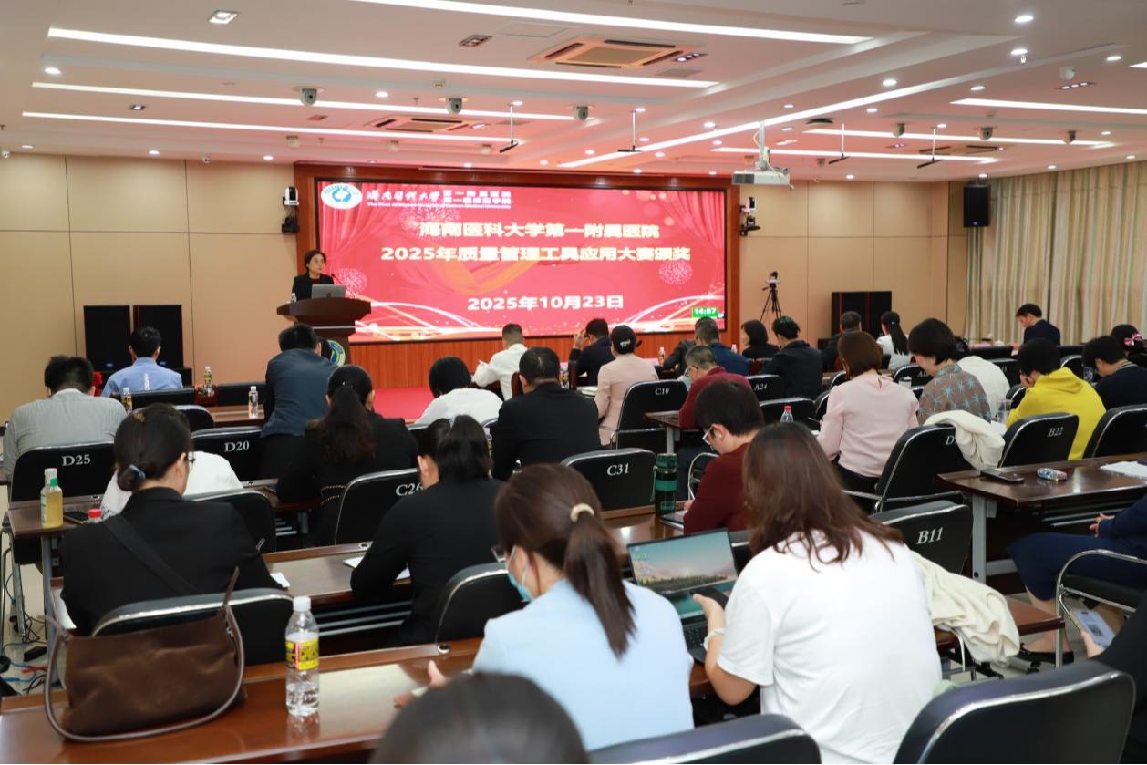 10月23日下午,海南医科大学第一附属医院2025年质量管理工具应用大赛颁奖仪式在综合住院楼5、6号会议室举行。院领导徐剑、李琪、肖红秀、孟凡莉、赵振强、黄雄高、黎海江出席仪式,并为获奖团队颁奖。 本次大赛以“深化工具应用、提升服务质量”为目的,吸引全院 103个临床与管理领域实践案例参赛。各团队紧扣医院发展需求,将 PDCA 循环、品管圈(QCC)、根本原因分析(RCA)等工具融入工作,聚焦临床诊疗、护理服务、医院管...