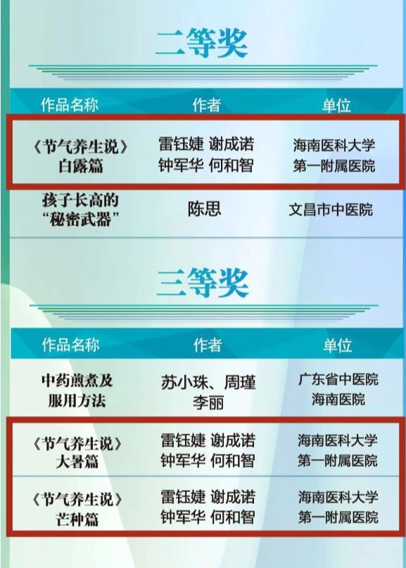 日前,第四届全国说医解药科普大赛(海南赛区)暨海南省“中国医师说中医”中医药科普知识大赛获奖结果正式公布。海南医科大学第一附属医院选送的科普作品表现亮眼,一举斩获二等奖1个、三等奖2个,充分展现了我院在健康科普创作与中医药文化传播领域的扎实功底与创新活力。本次大赛由海南省中医药管理局主办,以“解读中医药经典,弘扬中医药文化” 为主题,旨在深入推进中医药文化弘扬工程,提升公众中医药健康素养。大赛吸...