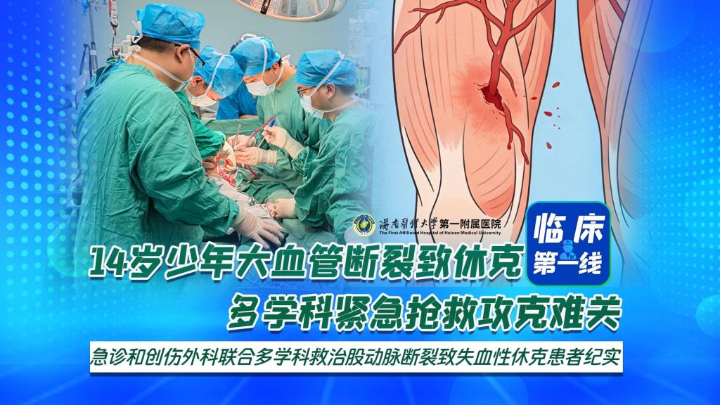临床第一线丨14岁少年大血管断裂致休克 多学科紧急抢救攻克难关。海南医科大学第一附属医院急诊和创伤外科联合多学科救治股动脉断裂致失血性休克患者纪实。